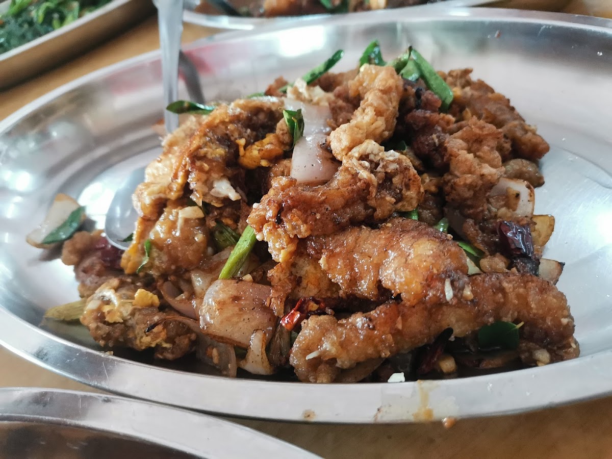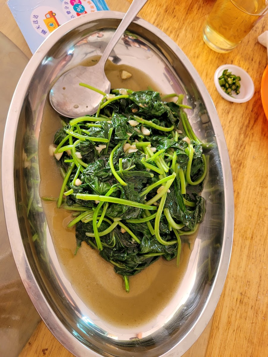 Vegetable dishes are not treated as an afterthought here. The 清炒番薯叶, or stir-fried sweet potato leaves, brings a clean, earthy contrast to the richer seafood plates. It’s simple, well-executed, and rounds out the meal naturally. For those who enjoy bolder flavors, the Mantis Prawn with Dry Chili stands out. The dish delivers a satisfying balance of heat and aroma, making it a favorite small plate to share over dinner.