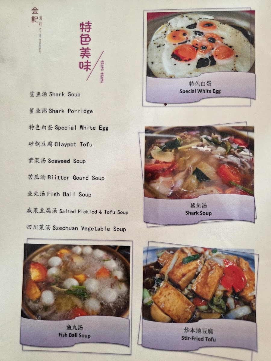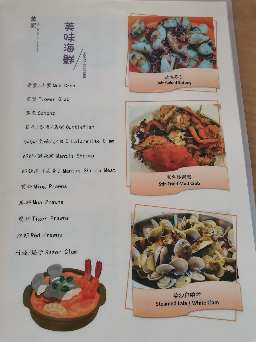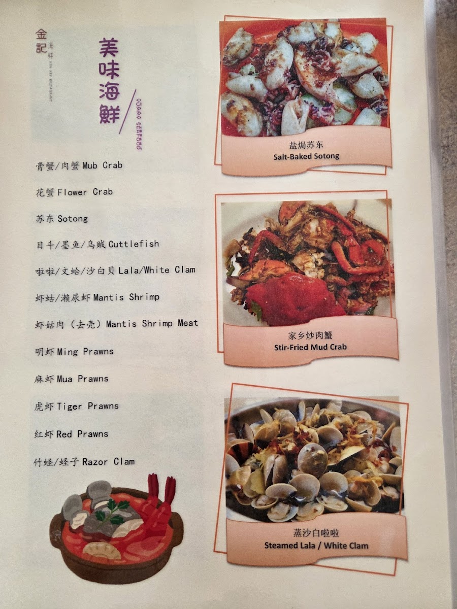 Viewed as a complete experience, the menu at Kim Kee Restaurant reflects a confident balance between classic Teochew cooking and robust seafood-driven flavors, making it especially appealing for group dining. Signature seafood items such as Salted Squid, Salted Pepper Squid, and Deep Fried Squid highlight the kitchen’s skill with texture, offering everything from smoky char to crisp, well-seasoned bites, while Mantis Prawn with Dry Chili, 虾蛄, and Shrimp and Clams bring bold, savory heat that complements the natural sweetness of fresh shellfish. Steamed dishes like Teochew Steamed Fish and 潮州清蒸白皂魚 focus on purity and freshness, allowing the quality of the fish to stand out without unnecessary embellishment. For diners who appreciate comforting, traditional flavors, options such as 瓦煲海泥鳅, Fish Ball Tofu Soup, 鯊魚湯, and Shark Soup add depth to the menu with rich broths and slow-cooked warmth. Vegetable dishes including 清炒番薯叶, 蒜蓉清炒菜心, and Bitter Gourd Fried Egg provide a clean, home-style contrast to the heavier seafood plates, helping the meal feel balanced rather than overwhelming. Rice and noodle lovers are well served by Rice Noodles with Crabs, which ties together sweetness, umami, and satisfying heartiness, while Crab Fried Sweet and Sour Sauce delivers a more indulgent, crowd-pleasing flavor profile. Overall, the menu feels thoughtfully composed, offering variety without losing focus, and showcases a clear dedication to fresh ingredients, traditional techniques, and bold yet familiar tastes that define the restaurant’s identity.